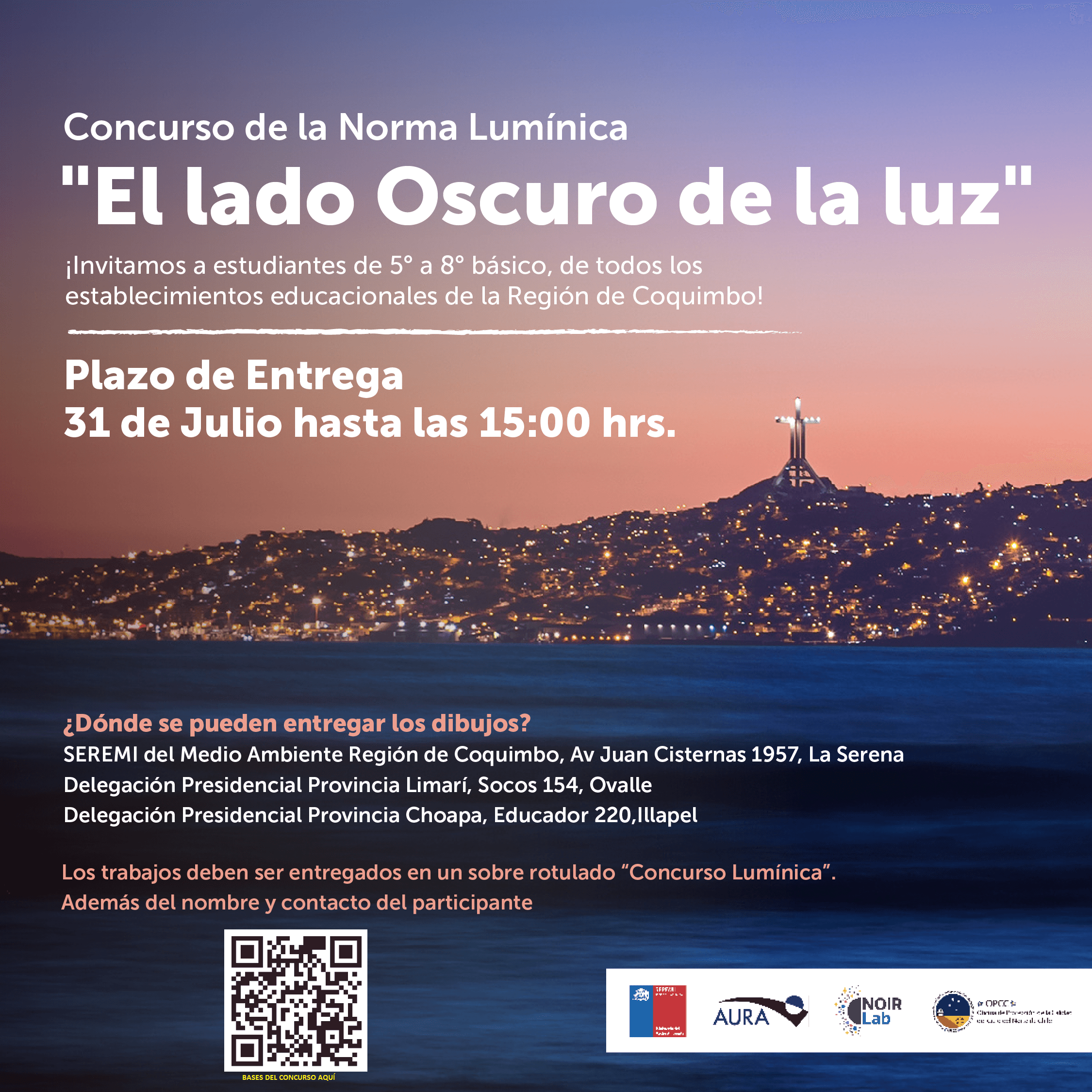 Estudiantes de 5° a 8° básico de todos los establecimientos educacionales de la Región de Coquimbo podrán participar en el concurso de dibujo “El Lado Oscuro de la Luz”, cuya finalidad es educar y promover el conocimiento de la importancia de proteger los cielos nocturnos de la contaminación lumínica.