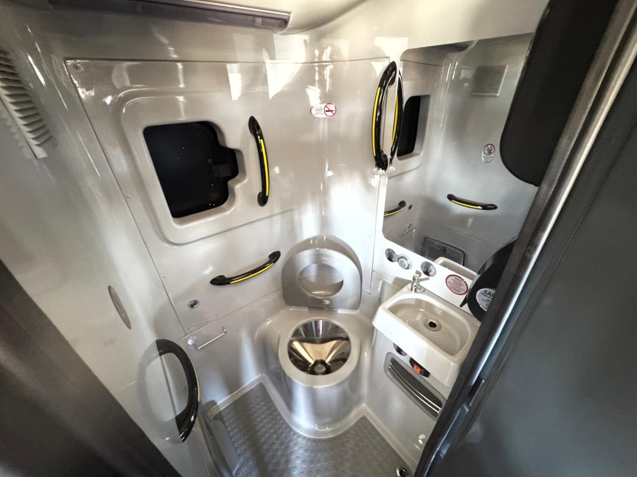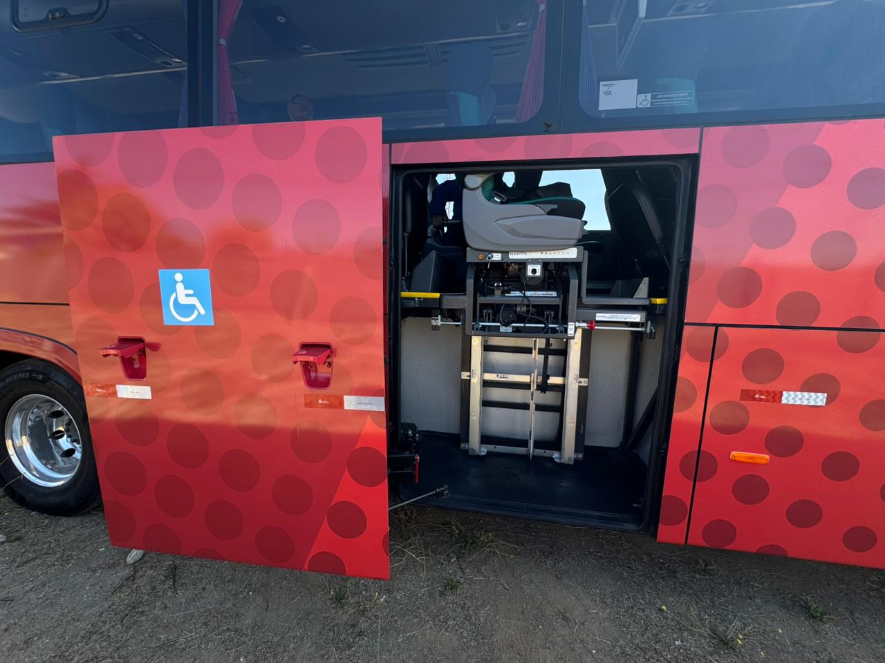 El moderno bus ha sido diseñado para brindar un transporte cómodo, seguro y accesible, incorporando un innovador sistema de elevación que permite que un asiento descienda hasta el nivel del suelo, facilitando significativamente el acceso de quienes presentan dificultades de desplazamiento.